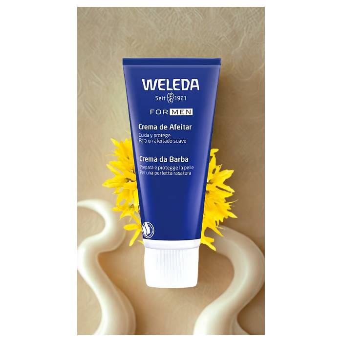 Disfruta de un afeitado manual más suave y respetuoso con tu piel con la Crema de Afeitar de Weleda. Su fórmula 100% natural genera una espuma fina y cremosa que facilita un afeitado apurado, incluso en pieles sensibles. Enriquecida con ingredientes como leche de cabra, leche de almendra y extracto de pensamiento silvestre bio, esta crema protege la piel durante el afeitado y la deja calmada, suave y perfectamente acondicionada.