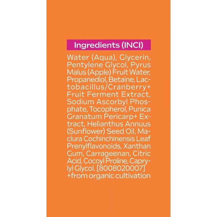 Este tratamiento combina vitamina C, vitamina E y arándano rojo fermentado para actuar en profundidad, mejorando visiblemente la textura y el tono de la piel. Ideal para cutis apagados, con impurezas o manchas, ayuda a suavizar, purificar y revitalizar el rostro.