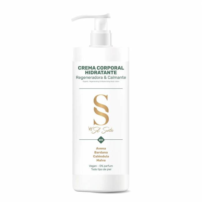 Crema corporal ecológica, enriquecida con extractos de plantas medicinales de acción hidratante, regeneradora, calmante y tonificante.