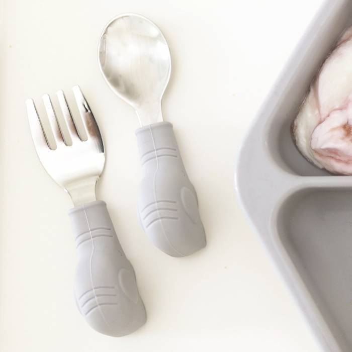 - Tenedor con púas redondeadas seguras y cuchara profunda.